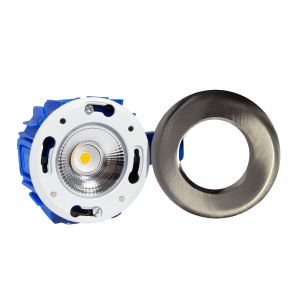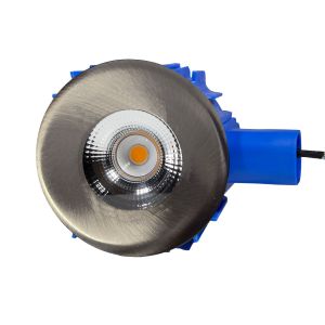 Deze nikkel, 6 watt led spot is dimbaar en geeft warm wit licht met een kleurtemperatuur van 3000K. Hij is IP44-spatwaterdicht en past precies op een plafond centraaldoos.