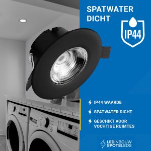 Verlicht diverse ruimtes met deze trendy, zwarte inbouwspot. Plaats hem bijvoorbeeld in het plafond in de woon- of badkamer, keuken, buiten onder een veranda of onder een overkapping. Deze led spot heeft een uniek design door het ontwerp van de glasplaat en zijn stralingshoek. Het licht wordt door de diffuser op een sfeervolle en warme manier door de ruimte verspreid. Door de ingebouwde driver is de inbouw led-spot direct aansluitbaar op 230 volt. Ook is hij IP44-spatwaterdicht, waardoor de spot geschikt is voor zowel vochtige ruimtes, zoals in de schuur, als droge ruimtes.