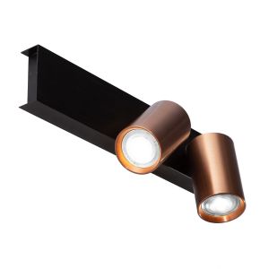 Aluminium dimbare roodbronzen wandlamp inclusief 2 verwisselbare 3000 kelvin Philips 4 watt GU10 led spot, direct aansluitbaar op 230 volt. Geeft warm wit licht en is IP21 stofdicht.