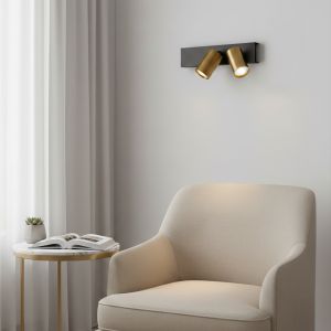 Aluminium dimbare gouden wandlamp inclusief 2 verwisselbare 3000 kelvin Philips 4 watt GU10 led spot, direct aansluitbaar op 230 volt. Geeft warm wit licht en is IP21 stofdicht.
